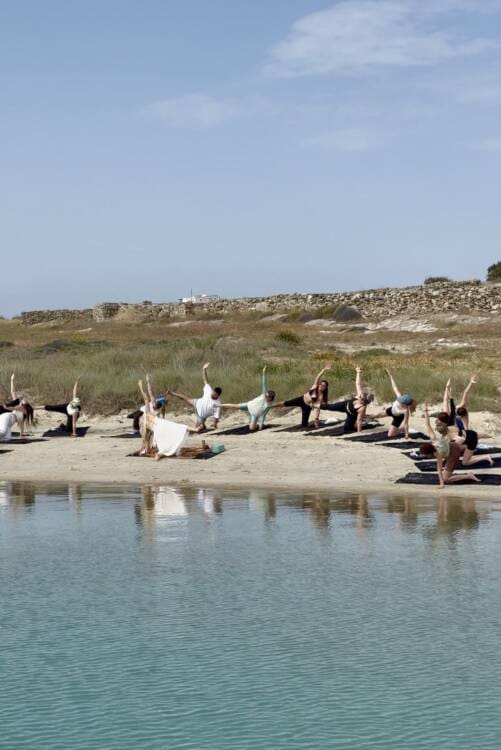 Seaside yoga and breathwork guided by Mikaela, focused on relaxation and renewal